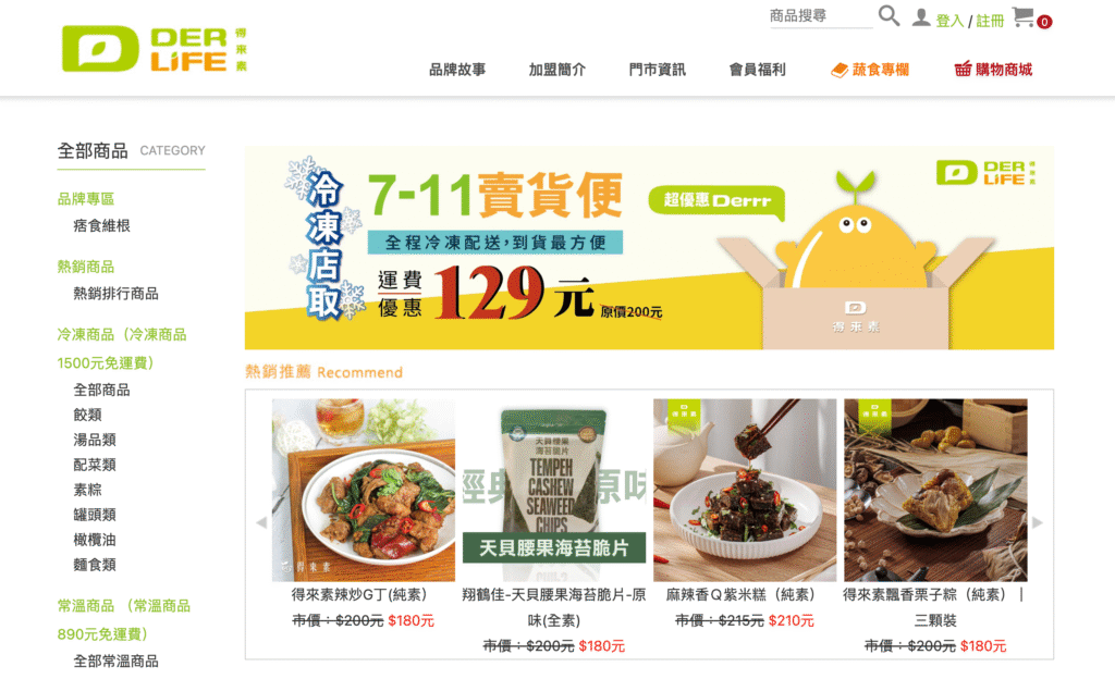 「得來素」電商平台截圖