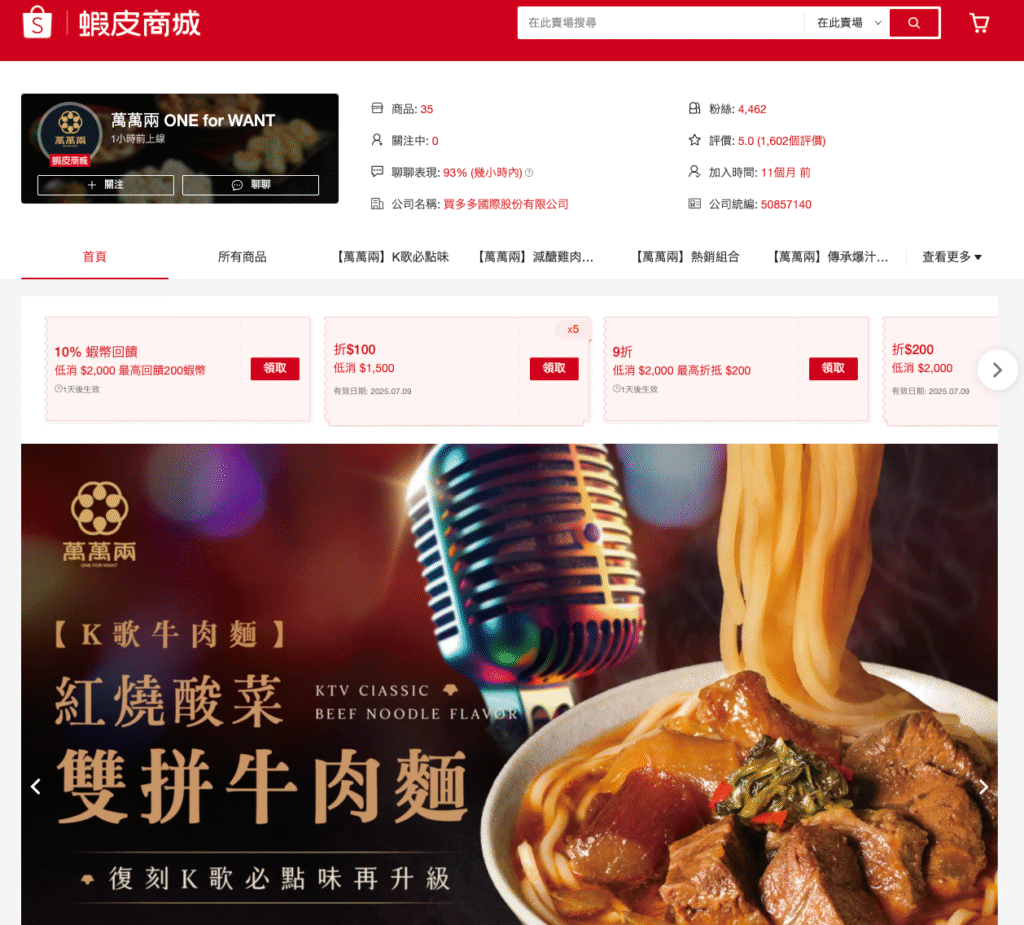 截至目前,買多多平台年營收已達近2億萬 元,萬萬兩成為其中成長最快的關鍵品牌。2025年起,我們將持續拓展「K歌牛肉麵系列」、「控卡雞肉水餃系列」與「全素蔬食水餃系列」,並計畫進一步擴展到跨平台零售與海外市場。